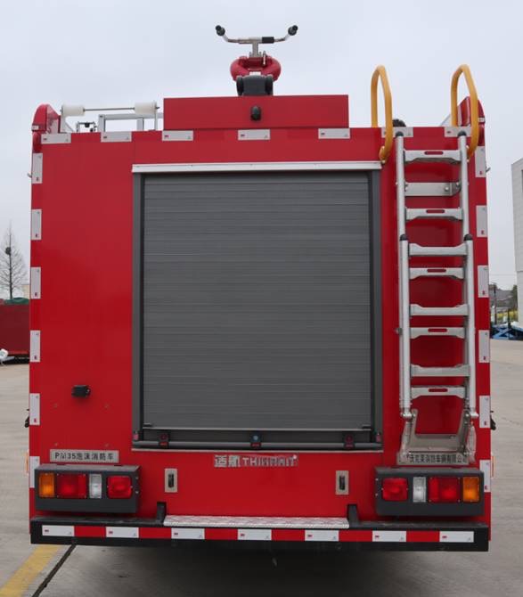 3.3 | 車后部設(shè)有登頂爬梯,能使消防人員迅速登上車頂,車頂鋪設(shè)滑板以確保人員在車頂安全行走,梯子和踏板站立面均做防滑處理。 |